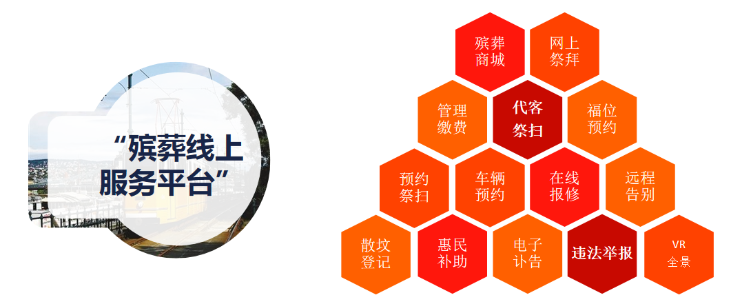扬州殡葬线上服务平台为丧属建立快捷、便利、高效的互联网+殡葬服务平台通道。持续推出网上纪念馆、线上商城、电子讣告、网上祭扫、预约祭扫、代客祭扫、福位预约、管理缴费、在线报修、墓位导航、远程告别、灵车预约、厅堂预约、火化机预约、VR全景等多项涵盖从逝者去世到骨灰落葬的整套服务,真正做到身后一件事的便民举措,减少群众投诉,杜绝乱收费现象,规范了殡葬市场。